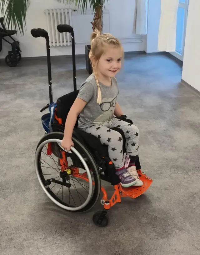 A na závěr – Adélka má nové vozítko ❤️ po návratu z lázní téměř přestala chodit , po pár krocích spadla a už nedokázala vstát, tak máme nového pomocníka ☺️. Adélka je šťastná, líbí se jí ta samostatnost a větší kontakt s okolím. Dnes nám přijde na vyzkoušení i chodítko, které jí bude pomáhat doma 🙂