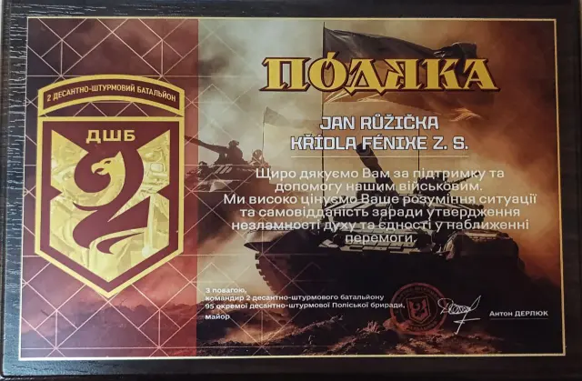 A ještě přijelo moc hezké poděkování za stálou pomoc od 2. praporu 95. brigády. Všechno to patří hlavně vám, dárcům: