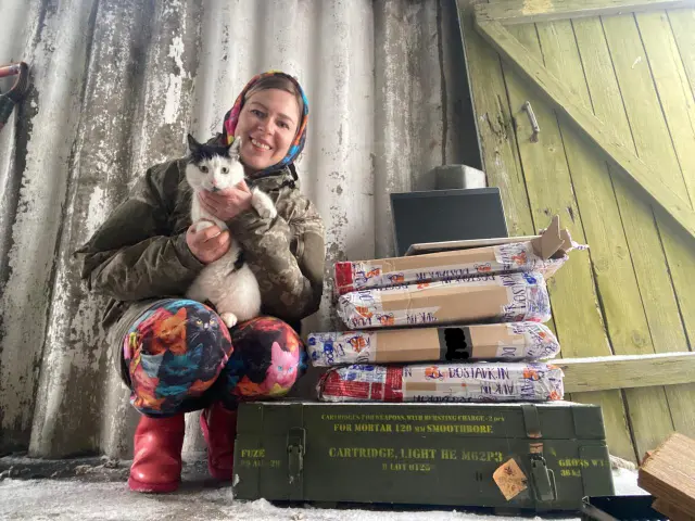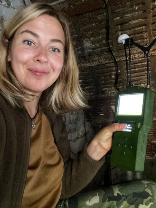 Na fotografii je detektor dronů „Dzyga“ v rukách pilotky FPV dronů: