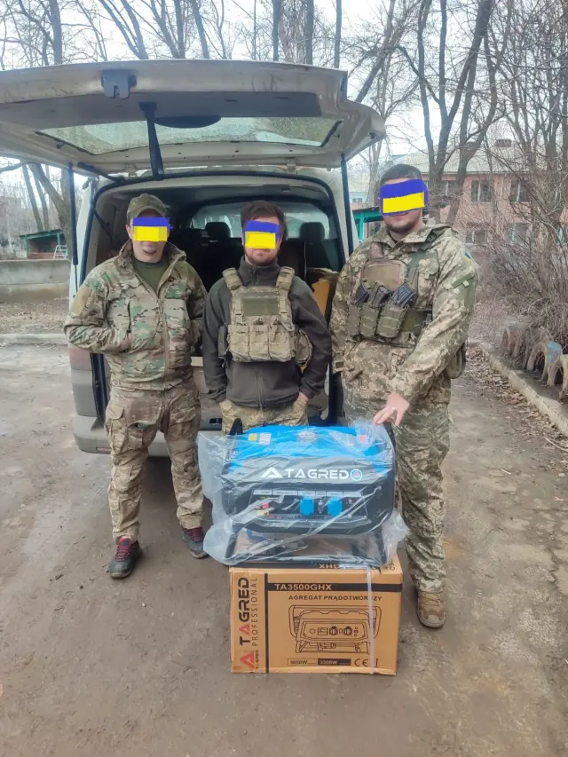Elektrocentrály následně na naše náklady dovezeme na Ukrajinu a předáme námi podporovaným jednotkám.