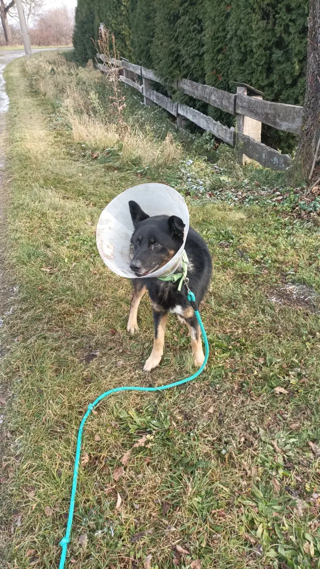 Belinka, kavkazská fenka, podstoupí operaci zadní nohy. Časté skákání jí poškodilo kolenní kloub. Je mladá a zaslouží si plnohodnotný život. ❤️ Operace je nutná – bez ní by nebyla schopná chodit.