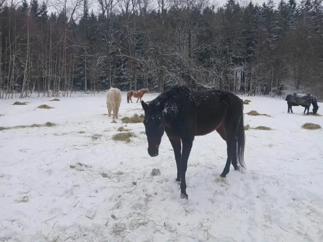 zdravíme s Nitisem všechny laskavé dárce, znovu moc děkuji za úžasnou podporu, bez Vás bychom to nezvládli… Pro dárce, kteří chodí na facebook jsem vytvořila stránku Nitis, kam budu také dávat nové aktuality. Zrovna napadlo hodně sněhu, u nás je to jako v pohádce :-). Nitis bere poctivě v krmné dávce všechny doplňky, které by ho měly posílit, aby zvládnul operaci, na kterou čekáme. Zítra snad už budu mluvit osobně s panem doktorem z kliniky a vyladíme detaily a budeme vědět snad už i přesný termín operace. Uff.