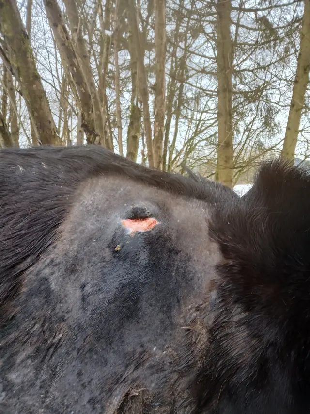 Jenže, když majitelka Nitise viděla, nestál tam kůň, který se vzdává. Stál tam bojovník. Kůň, který  i přes bolest dychtivě sleduje okolí, nechce odejít, nechce to vzdát…A tak věděla, že mu musíme dát šanci. Po domluvě byl převezen k nám a začali jsme zkoušet různé alternativní možnosti léčby.  Nitis se u nás velmi zlepšil , po psychické i fyzické stránce, začlenil se do stáda, začal dobře žrát  a majitelka mu po celou dobu dopřávala kůry hirudoterapie, očistné kůry Cytovetu, Dračí krve, konopného oleje, homeopatie, křemeliny, DHA a krmnou dávku mu doplnila o další výživové doplňky. A já denně vyplachovala píštěl …Množství hnisu a nekrotické tkáně, které odcházelo se nedá popsat…Nitis byl po celou dobu stále velmi milý, i když tělo obrovsky bojovalo, měl zájem o kontakt, všude mě doprovázel, vítal mě, vedl život se svými stádovými druhy… Zánět se po 3 letech u nás ohraničil, výsledky krve jsou konečně  v pořádku, píštěl už jen lehce teče a jak jsme po té mohli zjistit, stále tam dráždí nějaký úlomek kosti a tělo se snaží zbavit nekrotické tkáně kolem. Ke konečnému uzdravení a životu bez bolesti by mu mohla pomoci chirurgická operace na klinice v Brně.