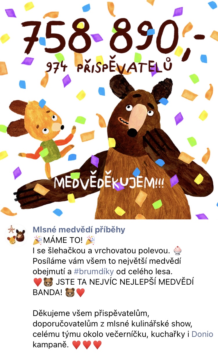 Takto svým přispěvatelům na sociálních sítích poděkovali zakladatelé projektu Velká medvědí kuchařka.