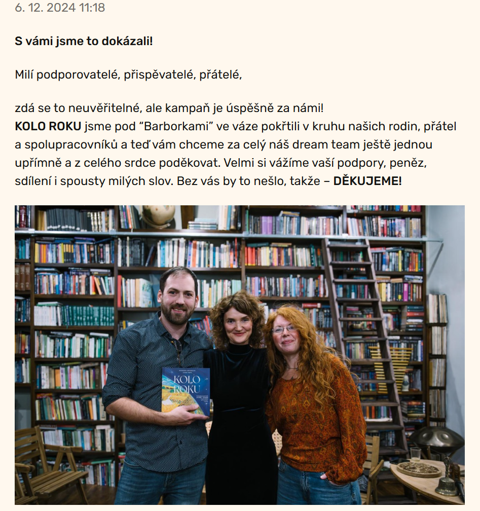 Takto svým přispěvatelům poděkovali zakladatelé projektu Vydali jste s námi KOLO ROKU! Fascinující příběh pro děti i dospělé.