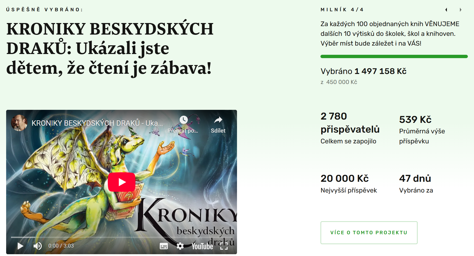 - Jako příklad můžeme uvést knižní kampaň KRONIKY BESKYDSKÝCH DRAKŮ: Ukažme dětem, že čtení je zábava!, kde zakladatelé vybrali více než 1 490 000 Kč.