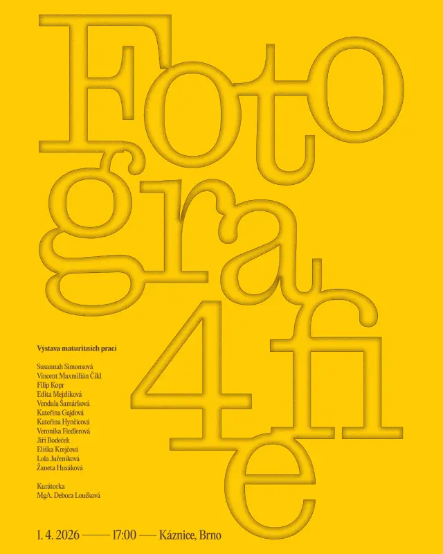 Dvanáct studentů fotografie z Brna chystá maturitní výstavu Fotografie4 v prostorách brněnské Káznice (1. 4. 2026). Pomozte nám s pronájmem, tiskem, instalací i vernisáží, aby naše čtyřleté studium mělo důstojné finále.