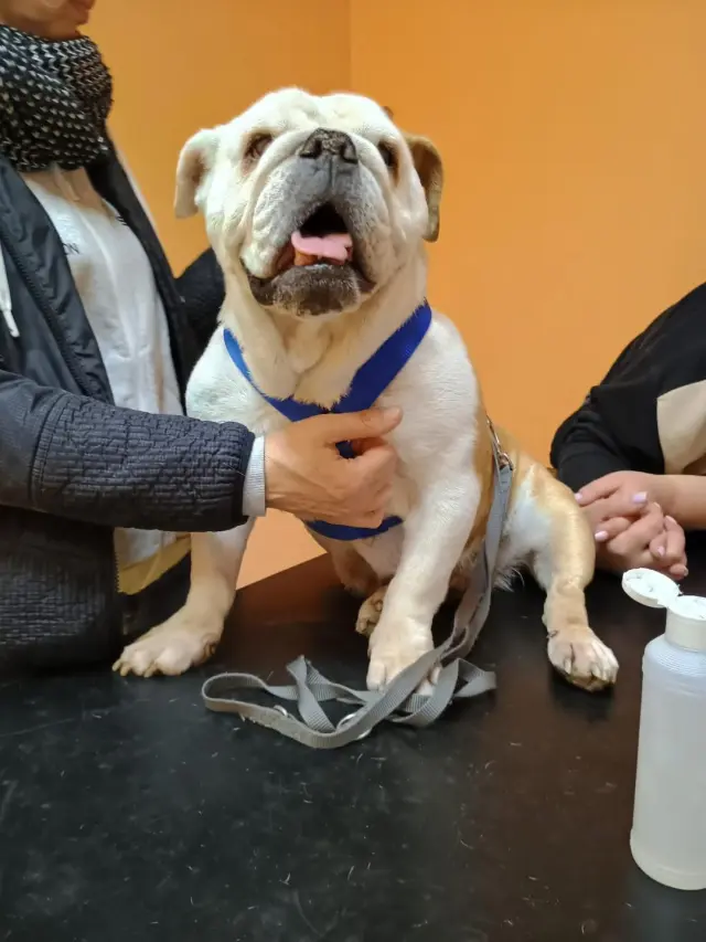 Stelinka, devítiletá anglická buldočka, k nám do záchranného spolku Dočasky De De přišla z útulku, aby nemusela trávit zimu v kotci. Věděli jsme, že její zdravotní stav nebude dobrý, ale realita nás hluboce zasáhla. Stela je fyzicky zničená dlouholetým množícím životem — bolavé klouby, nádory na mléčné žláze a poškozené oči, které ji bolí při každém mrknutí.